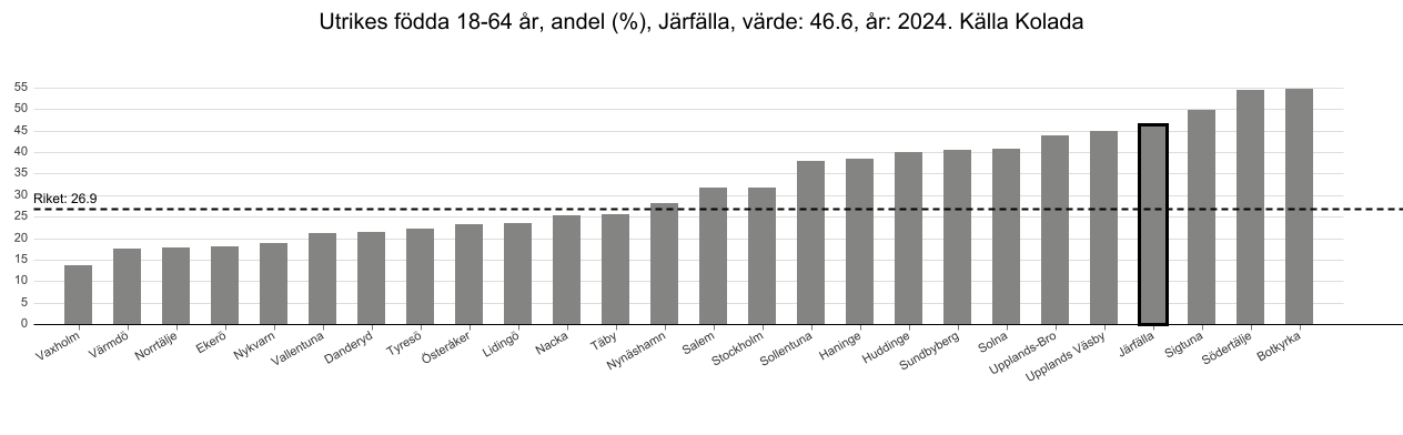 Andelen utrikesfödda i Järfälla kommun 18-64 år.