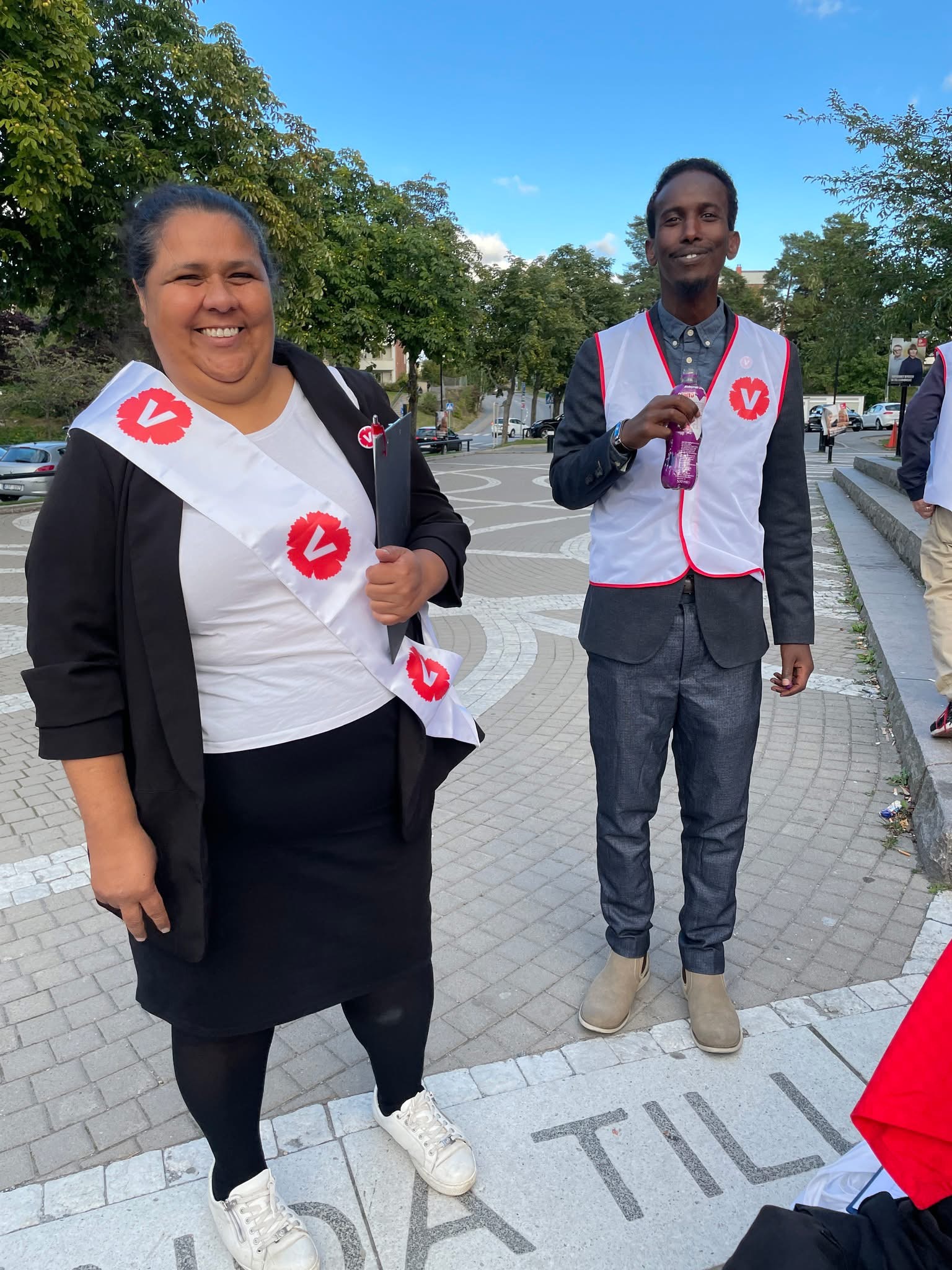 Här kampanjar den numera uteslutna Lorena Vargas i Jakobsberg. Foto: Vänsterpartiet Järfälla